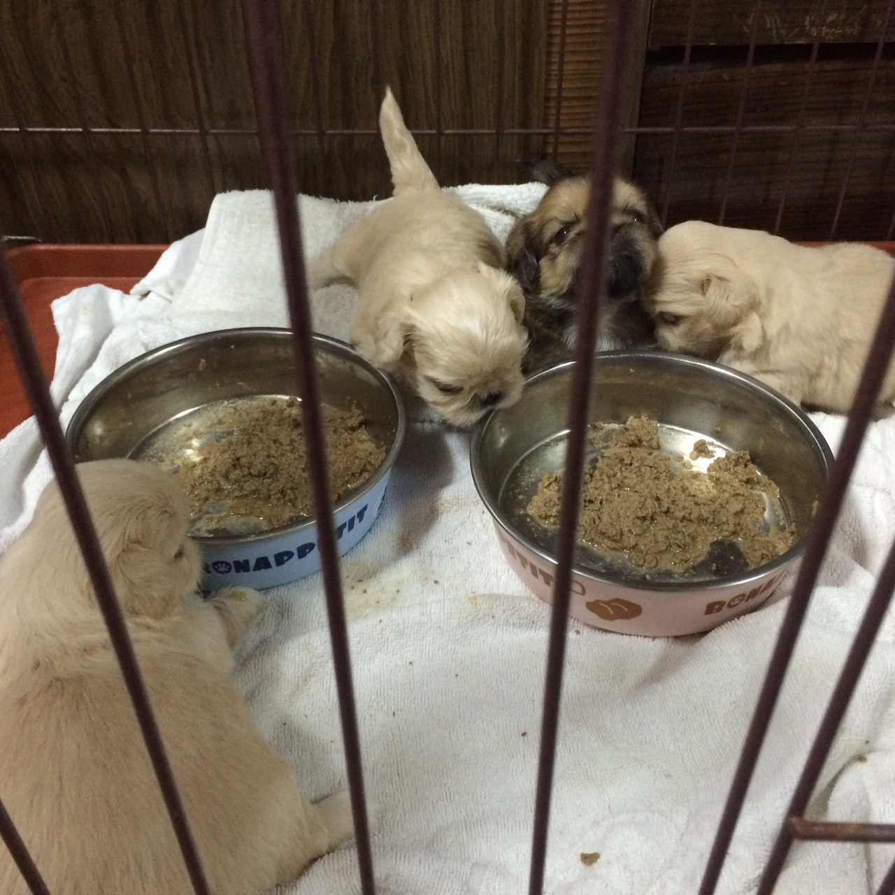 我が家のペキニーズの赤ちゃんたち 元気に成長してるのですが 離乳食開始したのに …